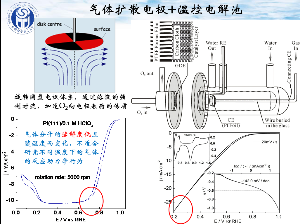 ●实现了在可控的传质,较宽的温度与电势范围内研究气体电极反应的动力学行为
